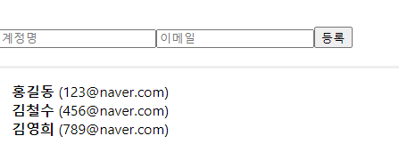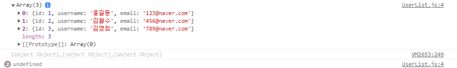 // 0: {id: 1, username: '홍길동', email: '123@naver.com'}